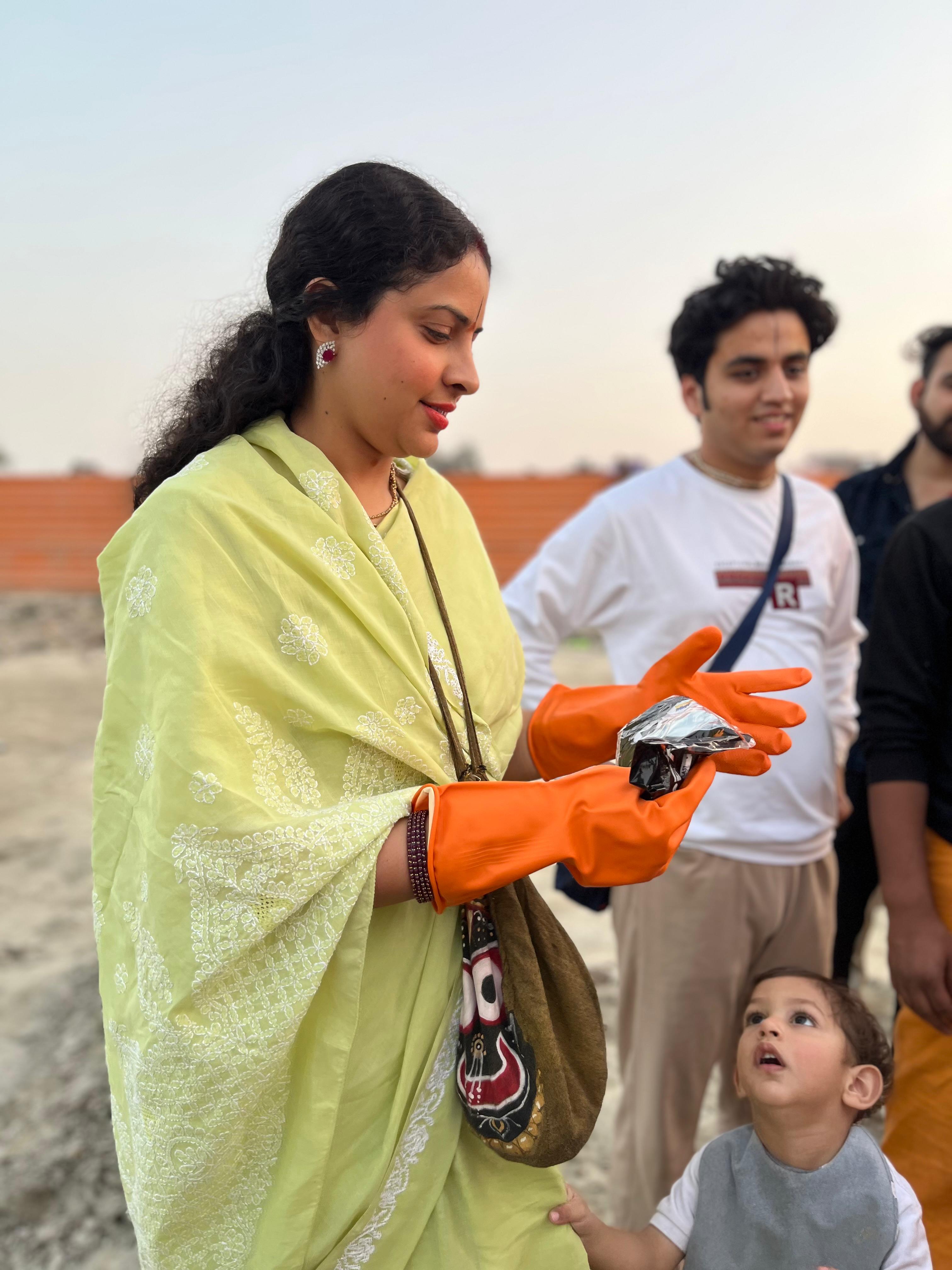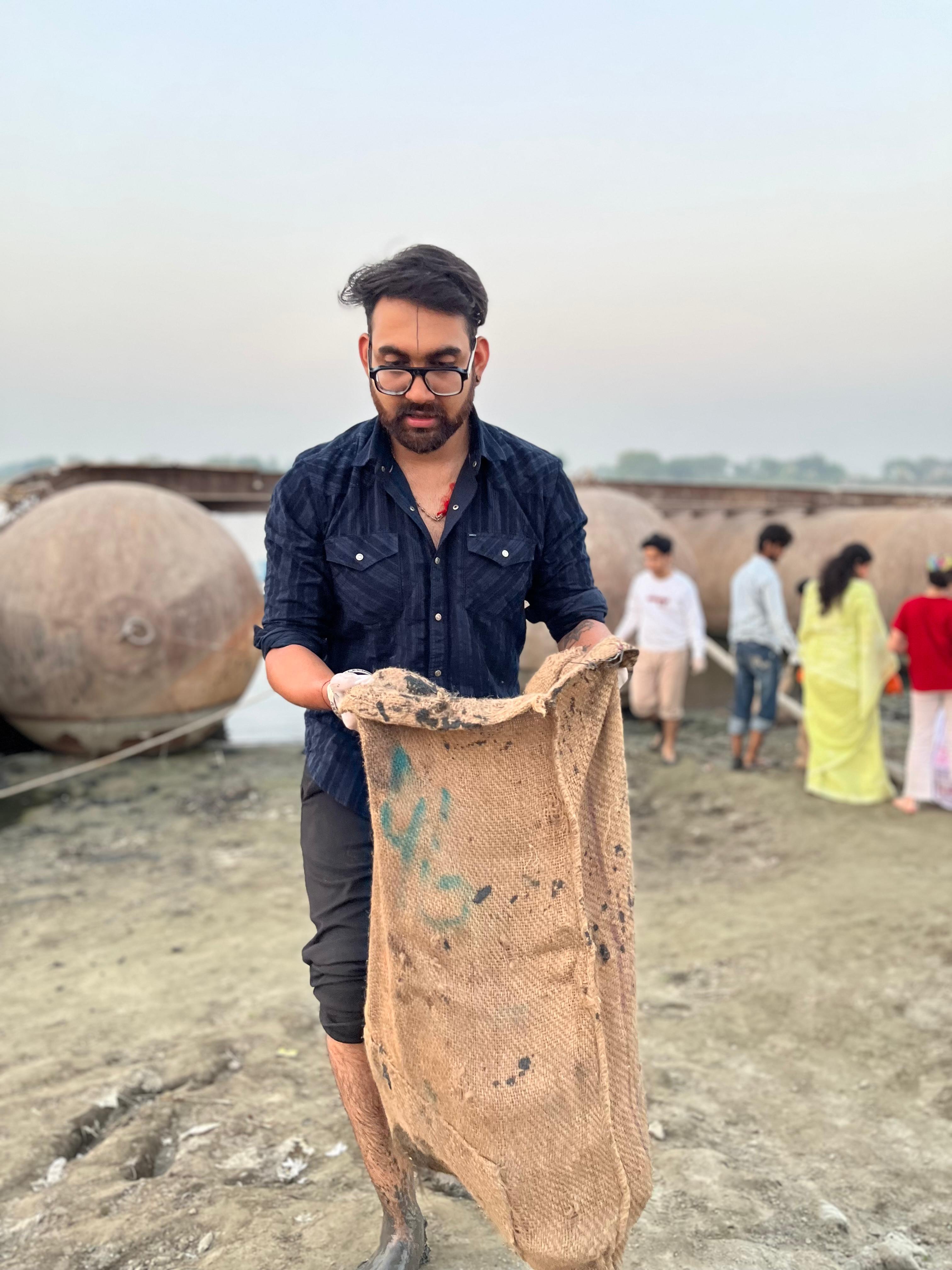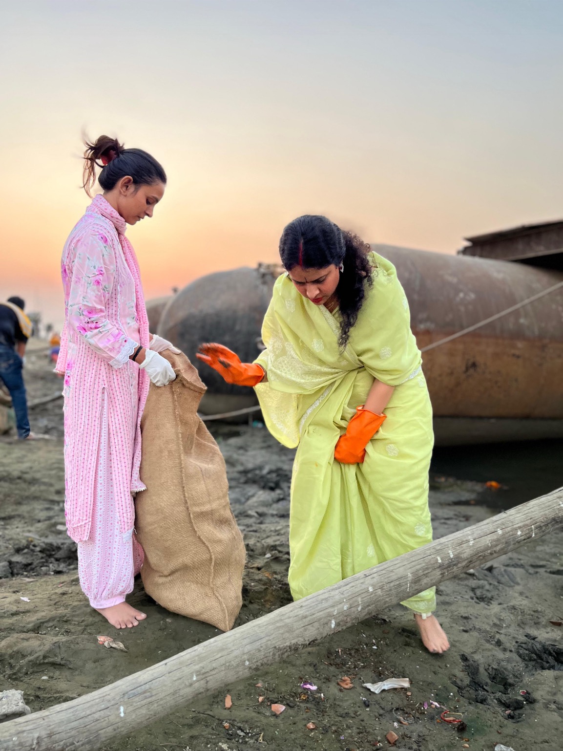 Nimai Pathshala under the guidance of Shri Pundrik Goswami Ji Maharaj and Smt. Renuka Goswami Maiya cleaned a very large portion of Yamuna Ji